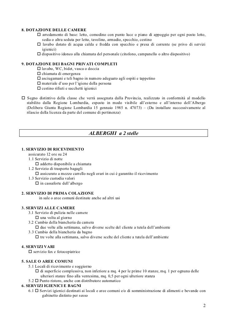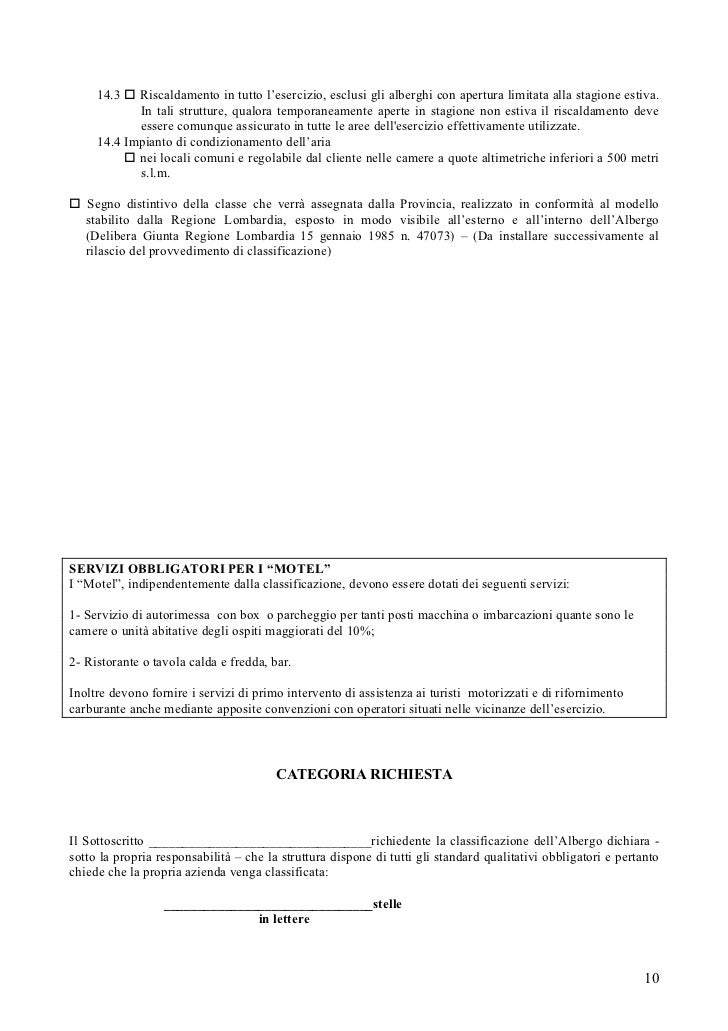 Modello A Standard Qualitativi Obbligatori Minimi Per Gli Alberghi D