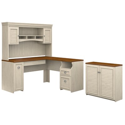 Bush Furniture Fairview 60w L Shaped Desk With Hutch And Small Storage Cabinet Antique White Tea Ma Quill Com