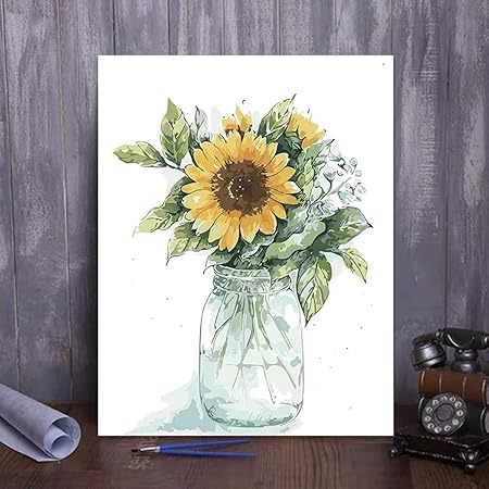 Tinta emoldurada por números para adultos, kits iniciantes, grandes quadros de tela para pintura a óleo acrílico colorido, artesanato, hobbies para adultos e girassóis, decoração de parede, 40, 64 cm x 50,